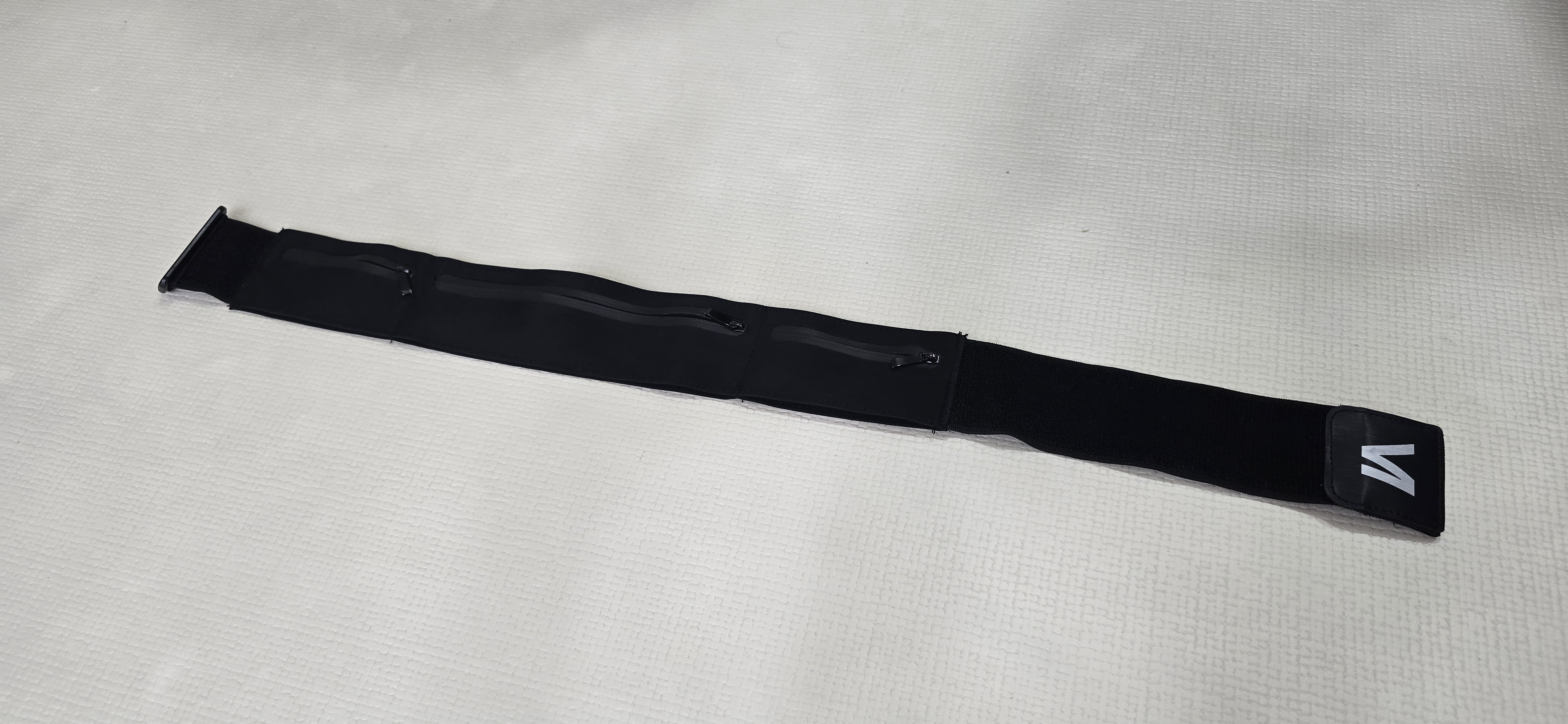 중앙 수납부는 스마트폰을 위한 공간으로 충분하며, 양 옆에는 작은 지퍼 수납공간이 따로 있어 실용성도 뛰어납니다. 저처럼 장거리 러닝을 할 때 블루투스 이어폰 케이스를 한쪽에, 차 키를 다른 한쪽에 넣을 수 있어 무척 편리합니다.