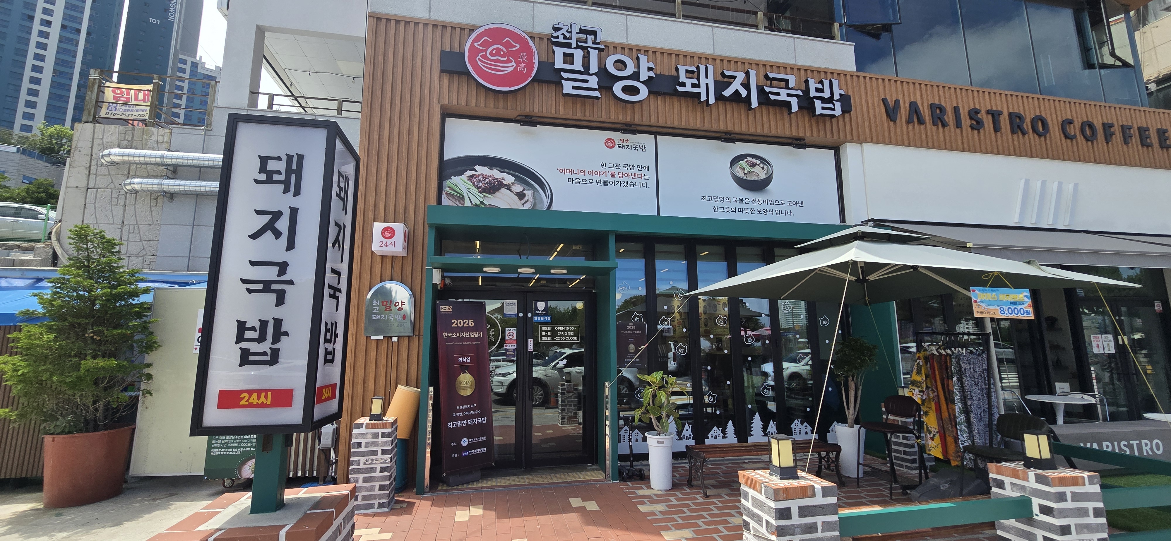 부산 송도 해수욕장 중심부, 현인광장 맞은편에 위치한 돼지국밥집, ‘최고밀양돼지국밥’.